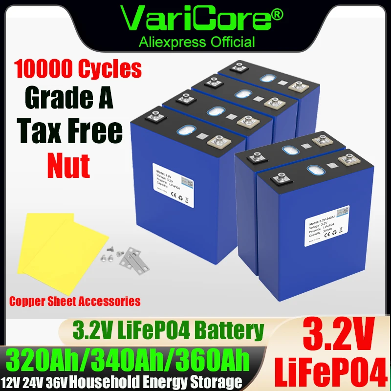 3.2V 360Ah 340Ah Lifepo4 Rechargeable Battery Lithium Iron Phosphate Travel Solar RV Campers 12v 24v batteries Grade A Tax Free