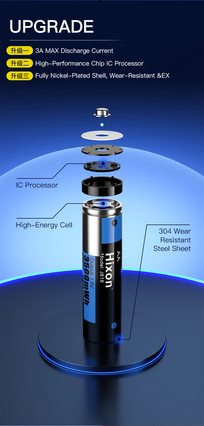 3A 3500mWh 1.5V AA Li-Ion Rechargeable Battery , Mouse, Electric Toy,High Capacity of 3500mWh Flashlights, Electronic Toys,