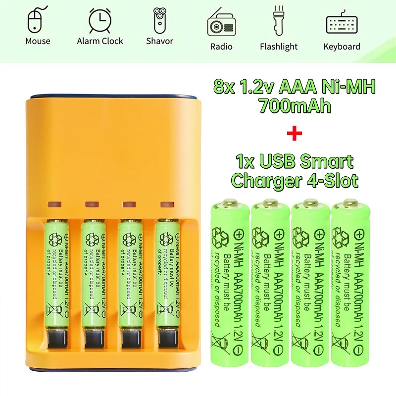 8Pcs 1.2v AAA Ni-MH Rechargeable Batteries 700mAh