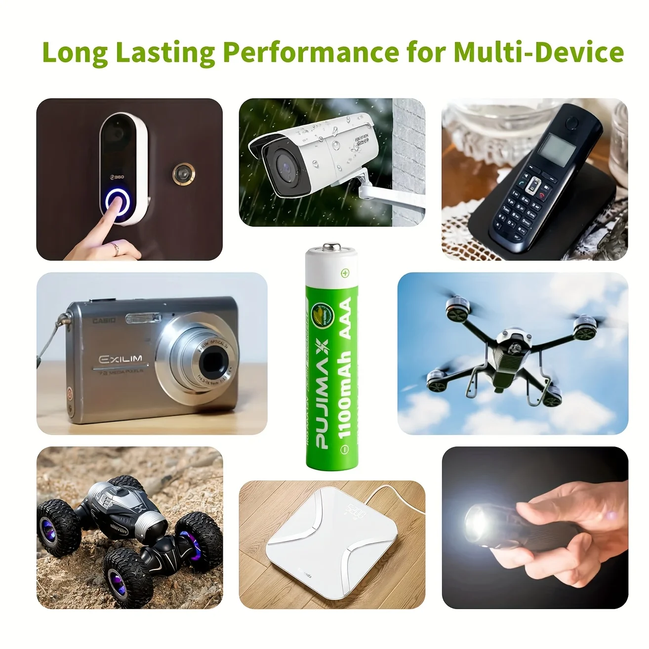 • Adequate 1100 mAh capacity, improving the battery life by over 30% compared to ordinary low-capacity rechargeable batteries. The device can operate for a longer time, and charging is not required frequently.